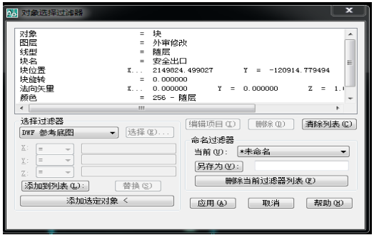 一般在CAD圖紙中通過(guò)FI(對(duì)象選擇過(guò)濾器)功能來(lái)進(jìn)行數(shù)量統(tǒng)計(jì),通過(guò)FI過(guò)濾塊名統(tǒng)計(jì)出各類(lèi)燈具的數(shù)量。對(duì)象選擇過(guò)濾器功能如下: