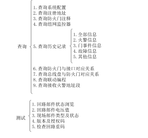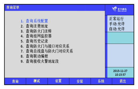 屏幕將顯示本回路被登記接口的類型、地址等信息。按屏幕提示,可以進(jìn)行防火門查詢以及接口與防火門匹配情況查詢。
