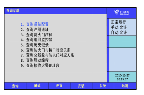 見7.1.8;選擇9:查詢接收火警地址段,見7.1.9。