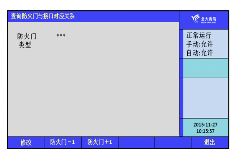 進(jìn)入查詢菜單后,鍵入數(shù)字鍵【6】可以查詢防火門與接口對(duì)應(yīng)關(guān)系。常開防火門對(duì)應(yīng)