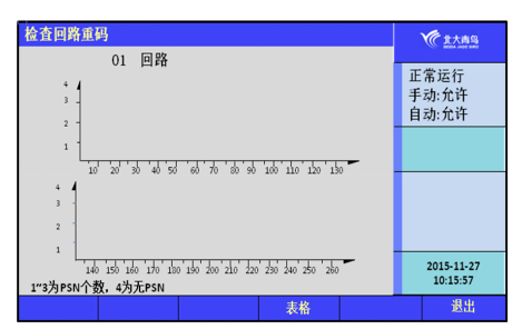 進(jìn)入測(cè)試選項(xiàng)菜單,選擇【5】,可以查看回路中是否有重碼。每個(gè)現(xiàn)場(chǎng)設(shè)備都有唯一的PSN碼,縱坐標(biāo)1~3代表回路中某個(gè)地址對(duì)應(yīng)的設(shè)備個(gè)數(shù),即PSN碼的個(gè)數(shù)。如果為4,則表示該設(shè)備沒有PSN碼。