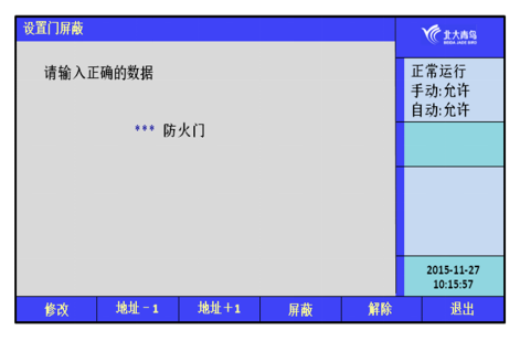 當(dāng)有防火門被屏蔽時(shí),面板屏蔽指示燈亮,進(jìn)入查詢菜單可以查詢到被屏蔽的防火門號(hào)及屏蔽的防火門總數(shù)。鍵入正確的數(shù)據(jù),可以屏蔽或者解除防火門,如圖所示。