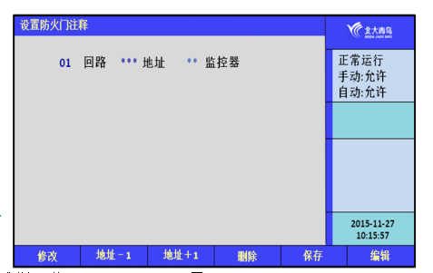 本監(jiān)控器可以采取三種方式實(shí)現(xiàn)漢字注釋: 一種方法是借助于我公司提供的專用漢字注釋軟件實(shí)現(xiàn);另一種方法是利用監(jiān)控器的鍵盤和液晶屏實(shí)現(xiàn),選擇安裝菜單中的 “3.設(shè)置防火門注釋”來實(shí)現(xiàn)文字注釋;還有一種是通過U盤方式進(jìn)行下載。