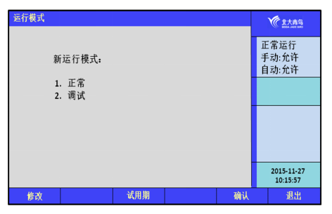 通過此菜單可以設(shè)置運(yùn)行模式,正常運(yùn)行的情況下,使用正常模式;在調(diào)試人員進(jìn)行調(diào)試的時(shí)候,選擇調(diào)試模式。