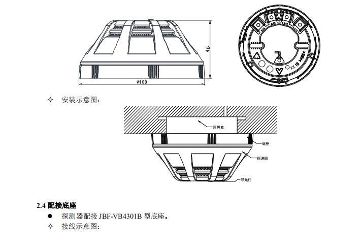 用2只M4的螺釘將探測(cè)器底座JBF-VB4301B紫固在預(yù)埋盒上。