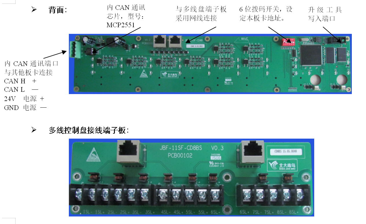 一塊JBF-11SF-CD8B多線控制盤具有8組控制輸出,每組包含一個(gè)啟動輸出,一個(gè)停止輸出和一個(gè)受控設(shè)備動作應(yīng)答輸入。